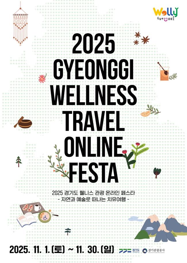 경기도와 경기관광공사가 11월 1일부터 30일까지 한 달간 도내 웰니스 관광지 9곳에서 최대 6만 원의 할인 혜택을 받을 수 있는 '2025 경기도 웰니스 관광 온라인 페스타'를 진행한다.