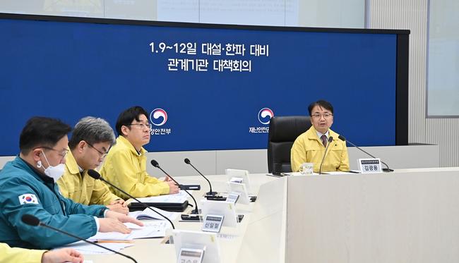 행정안전부는 9일부터 12일까지 전국 대부분 지역에 대설과 한파가 예보됨에 따라 김광용 재난안전관리본부장 주재로 관계기관 대책 점검회의를 열고 강설·한파 대응 상황과 기관별 대비 태세를 점검했다.