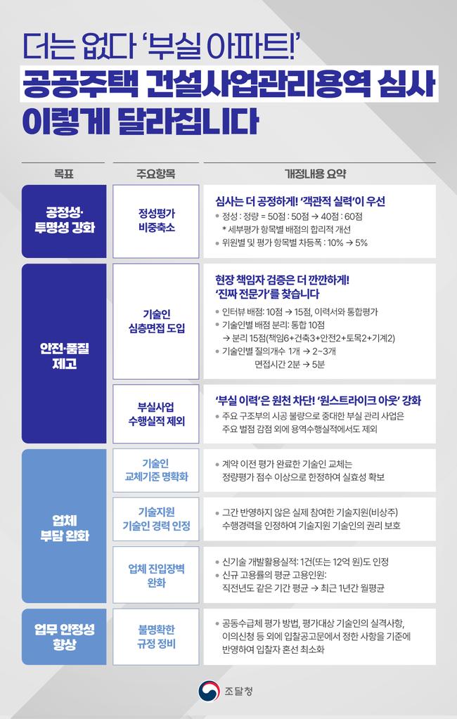 [인포그래픽] 공공주택 건설사업관리용역 심사 이렇게 달라집니다