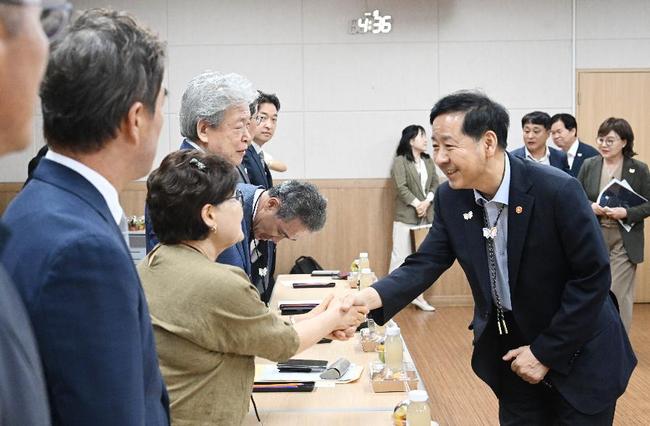 2025 APEC 정상회의 준비상황 점검차 경주시를 방문중인 구윤철 부총리 겸 기획재정부 장관이 9월 19일 오후 화백컨벤션센터(HICO)에서 'APEC 정상회의 성공개최를 위한 소상공인 대표 간담회'에 참석, - 악수하며 인사를 나누고 있다.