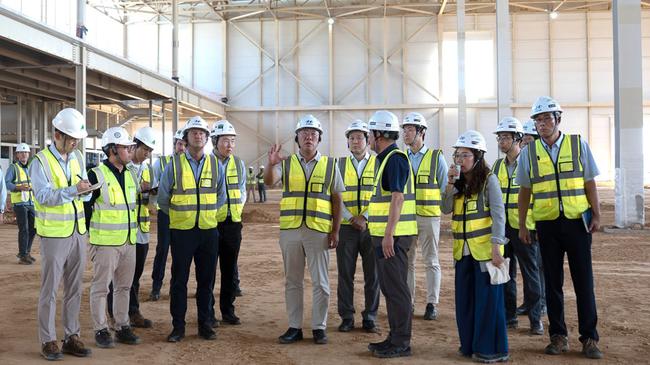 정의선 회장(가운데)이 사우디 신공장 건설 현장을 둘러보고 있다.